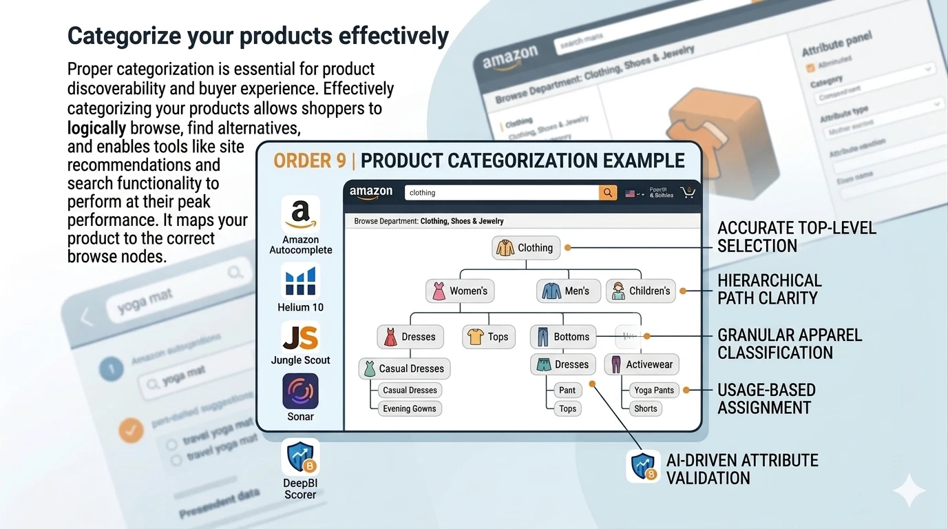 Accurate product categorization is the structural foundation of an engineered path toward marketplace visibility. On Amazon, the placement of a listing within the correct category and subcategory does more than just organize the catalog; it dictates how the A9 algorithm indexes the product and determines which customer-facing filters are unlocked. When a product is misclassified, it suffers from a fragmented traffic funnel, leading to a direct decline in CTR as it appears in irrelevant search results or fails to appear in specific browse nodes.
